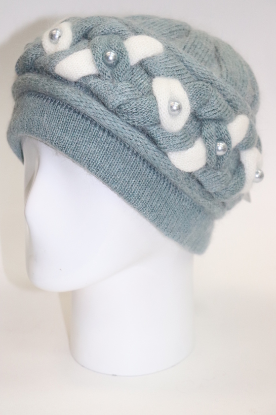 | Тип шапки | Женская шапка из ангоры декорированная переплетением и жемчугом |